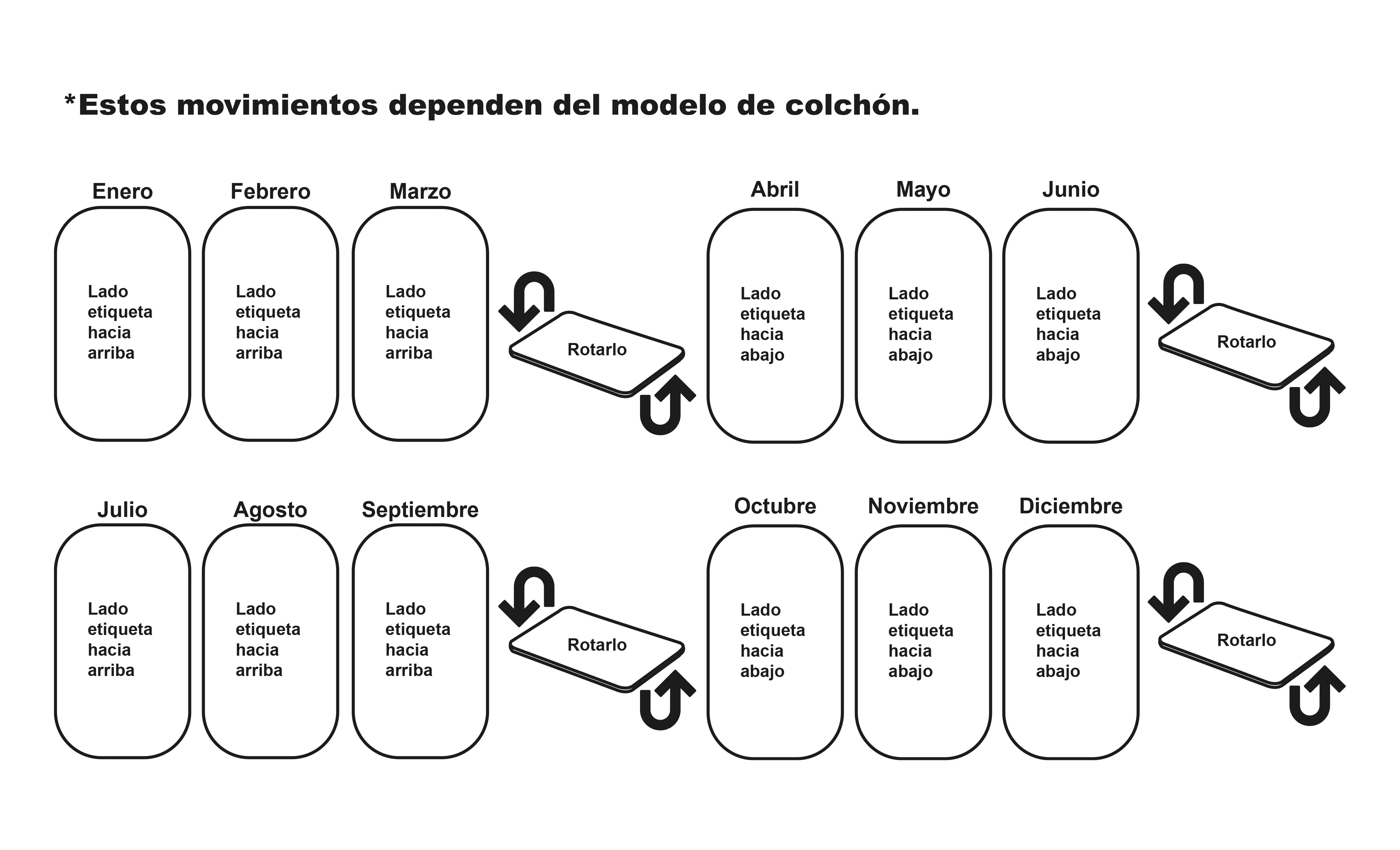 Para rotar su colchón, es necesario hacerlo entre dos personas, no corra riesgos dañando su colchón o perjudicando su salud con un esfuerzo excesivo.